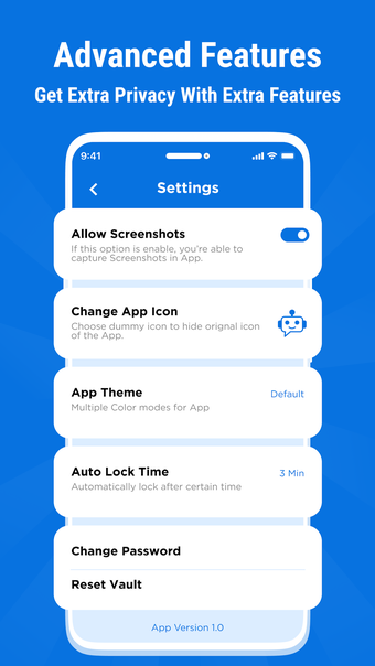 Photo Vault allows you to set a password or pin to secure your hidden photos, which will only be visible to you with the eyes-only protection feature. You can also choose a dummy app icon to hide the original icon of the private photo vault, giving the picture vault extra security.